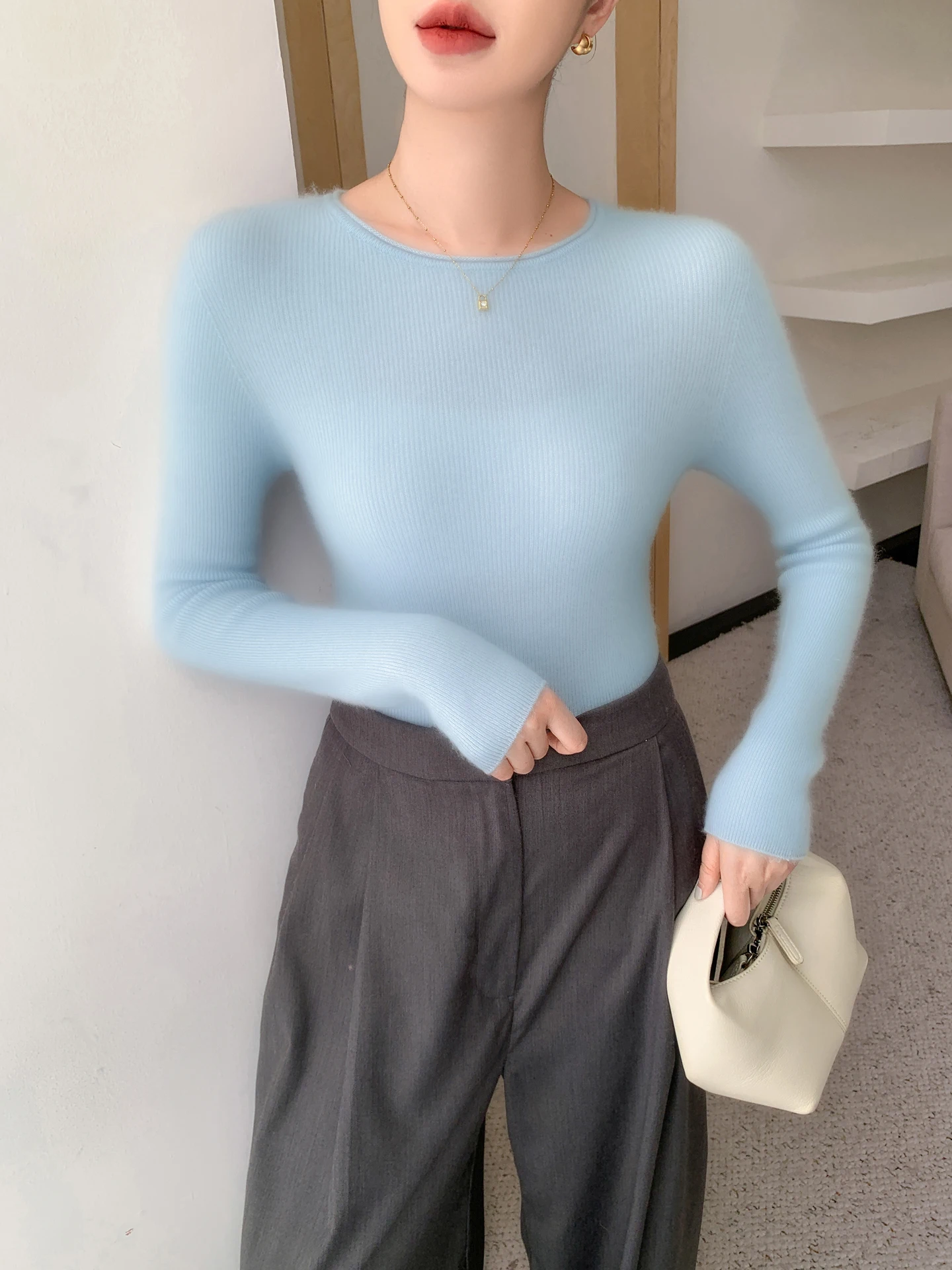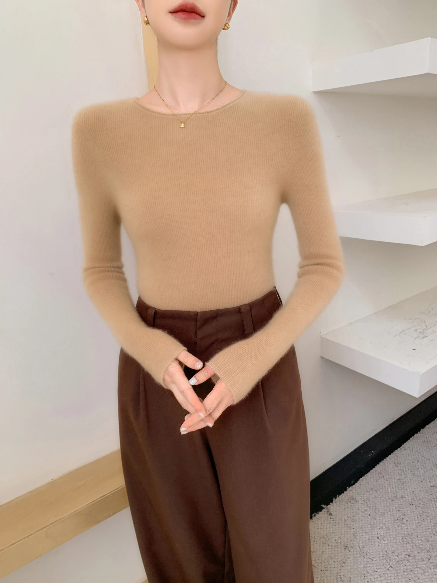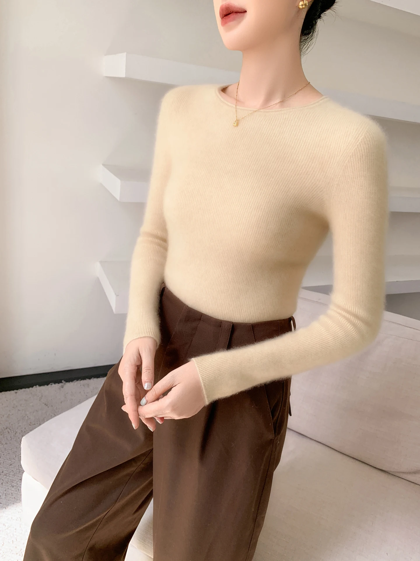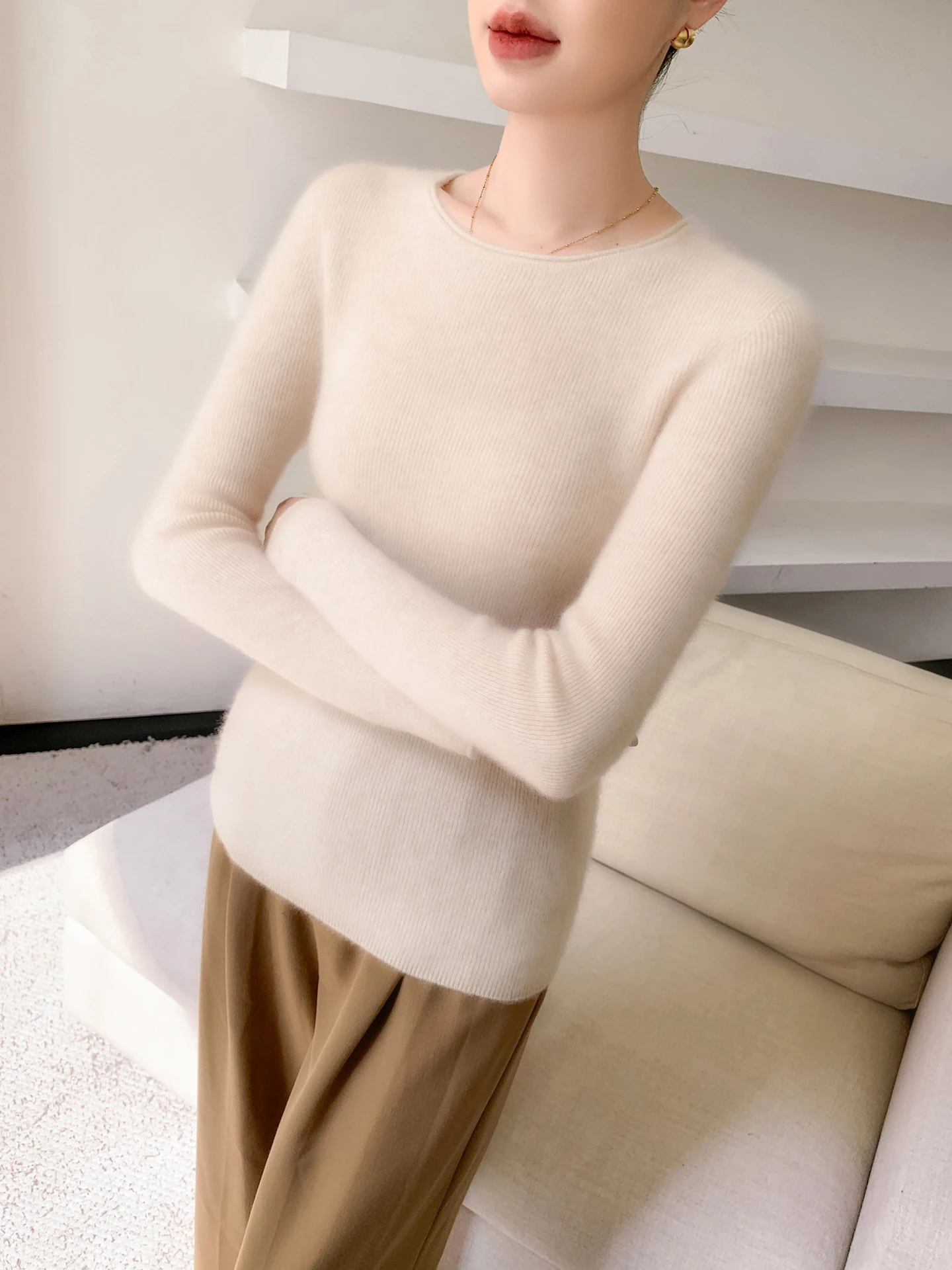 Skin affinity and hygroscopicity: Cashmere is more skin friendly than wool and hygroscopicity is stronger. Cashmere sweaters are the most absorbent of all textile fibers, and wool, although hygroscopic, is also good, but compared to cashmere is still slightly inferior. The fibers of cashmere are hollow and wool is solid, so cashmere is lighter, softer and warmer than wool.