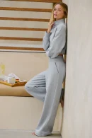 - product name: Women High Waist Knit Patchwork Fleece Lined Wide Leg Stacking Pants E